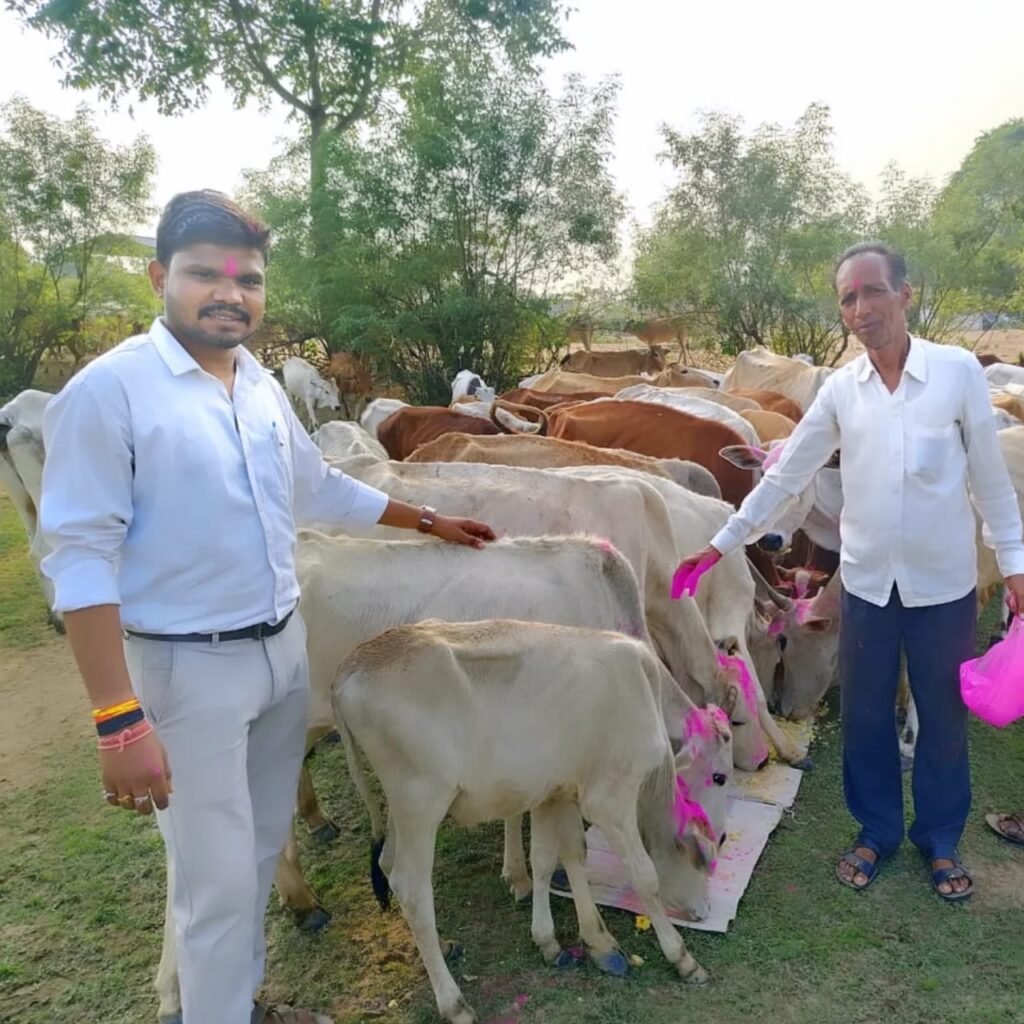 जांजगीर-चांपा @hemant-jaiswal :- गोवर्धन पूजा के पावन अवसर पर आज बिर्रा गौठान में ग्राम पंचायत बिर्रा एवं गौधाम समिति के पदाधिकारियों द्वारा विशेष कार्यक्रम का आयोजन किया गया। कार्यक्रम के दौरान पारंपरिक विधि से गौवंश सहित अन्य पशुओं के माथे पर तिलक लगाया गया और उन्हें ससम्मान भोजन कराया गया।