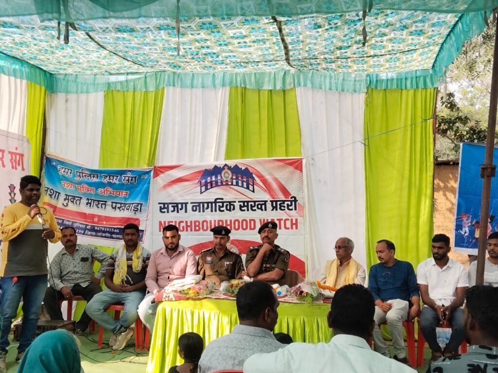 जांजगीर-चांपा @hemant-jaiswal :- जांजगीर-चांपा जिले के बिर्रा-बम्हनीडीह थाना क्षेत्र के गोविन्दा सबरिया डेरा मे पुलिस अधीक्षक विजय पांडेय के नेतृत्व में सबरिया समाज को शराबबंदी एवं स्वरोजगार से जोड़ने जन जागरूकता कार्यक्रम का आयोजन किया गया।कार्यक्रम के मुख्य अतिथि पुलिस अधीक्षक विजय पांडे द्वारा सबरिया समाज के लोगों को मुख्यधारा में लाने एवं स्वरोजगार के प्रति जागरूक करने हर संभव प्रयास किया जा रहा है। इसी कड़ी में पुलिस अधीक्षक द्वारा स्वरोजगार की ओर बढ़ने, उनके बीच के लोगों को बिहान कार्यक्रम में जुड़ने अपील कि गई।युवाओं को स्वरोजगार से जुड़ी महत्वपूर्ण जानकारी दी। साबुन, डिटर्जेंट पाउडर, अगरबत्ती और फिनायल निर्माण के तरीके विस्तार से बताए गए, ताकि युवा स्वयं रोज़गार के अवसर तैयार कर सकें। वही कार्यक्रम में महुआ शराब बनाना पूर्णतः बंद करने के संबंध में विस्तृत चर्चा की गई।
