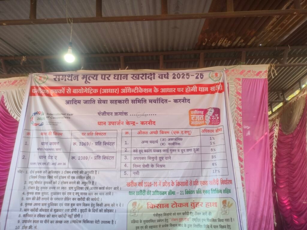 उपपंजीयक सहकारिता मंजू पाण्डेय ने धान उपार्जन केन्द्र करनौद,पोडीशंकर,लखाली सहित विभिन्न केन्द्रों का निरीक्षण किया और वहां किसानों से खरीदकर रखे गये धान का भौतिक सत्यापन कराया।। वहीं धान खरीदी केन्द्र करनौद में निरीक्षण के दौरान आवक रजिस्टर,तौल पत्रक,रकबा समपर्ण कि जानकारी ली,वही किसानों द्वारा तौल कराये गये धानों का तौल कराकर देखा गया जिसमें तौल कि मात्र सही पाई गई। केन्द्र में 1309 किसान पंजीकृत है,जिनमें अभी तक 73 किसानों ने अपना धान बेचा है। यहां 2874 क्विंटल धान की खरीदी की गई है।वही 62 किसानों ने रकबा समपर्ण किया गया।उपपंजीयक ने इस व्यवस्था पर संतोष जताया और उपस्थित कर्मचारियों को यही व्यवस्था आगे भी बनाये रखने के निर्देश दिये।