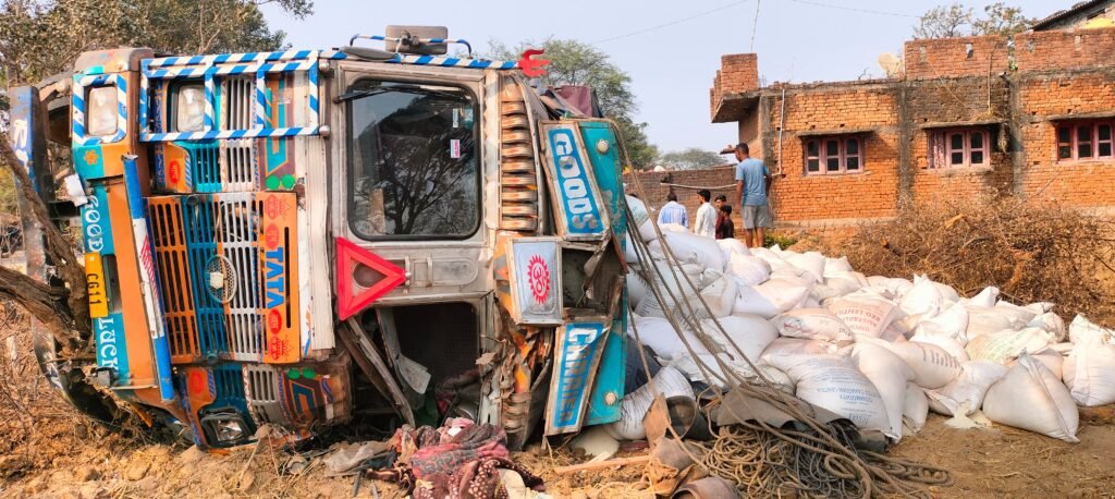जांजगीर-चांपा @hemant-jaiswal :- बम्हनीडीह ब्लॉक के गोविंदा गांव के बस स्टैंड मोड़ के पास शनिवार दोपहर शराब के नशे में धुत ट्रक चालक ने जमकर तांडव मचाया। चांपा रोड तरफ से चावल भरकर आ रहा ट्रक क्रं.(CG 11 AH 7770) तेजरफ्तार चलाते हुए ईको गाड़ी को टक्कर मार,11 केवी लाईन खंभे को तोड़कर,साथ ही घर के अहाता को तोड़ते हुए सीधे खेत में जा पलटा।हादसे में ट्रक चालक को मामूली चोटें आईं, लेकिन ट्रक पूरी तरह क्षतिग्रस्त हो गया, जिससे लाखों रुपये का नुकसान हुआ। प्रत्यक्षदर्शियों का कहना है कि चालक शराब के नशे में चूर होकर ट्रक चला रहा था नशे में तेज रफ्तार के कारण वाहन पर नियंत्रण खो बैठा और हादसा हो गया।