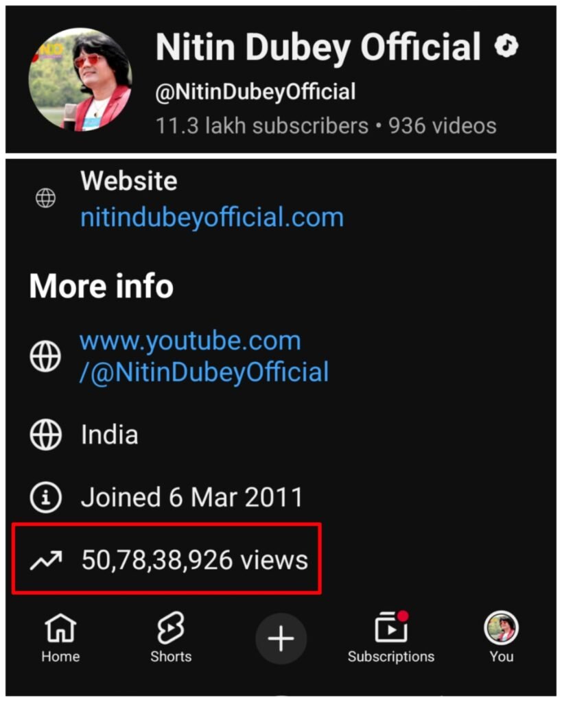 11 लाख से अधिक सब्सक्राइबर के साथ नितिन दुबे छत्तीसगढ़ी सिंगर्स में यूट्यूब पर नंबर-1 बने हुए हैं।