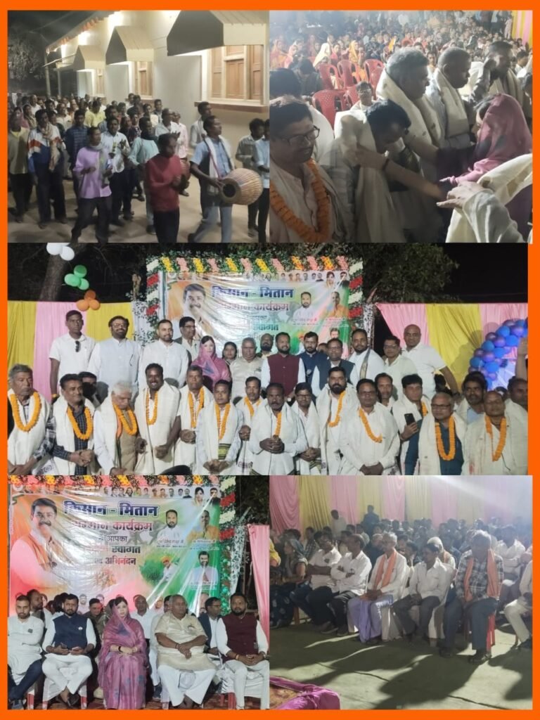 – किसान मोर्चा प्रदेश अध्यक्ष श्री आलोक सिंह ठाकुर जी के आह्वान पर जिले के ग्राम मालखरौदा में भाजपा किसान मोर्चा द्वारा ‘किसान मितान सम्मान समारोह’ का भव्य आयोजन किया गया। किसान मोर्चा संभाग सह-प्रभारी प्रवीण यादव के नेतृत्व में आयोजित इस कार्यक्रम में क्षेत्र के किसानों के प्रति कृतज्ञता व्यक्त करते हुए उन्हें सम्मानित किया गया समारोह में मुख्य रूप से वरिष्ठ महिला नेत्री संयोगिता युद्धवीर सिंह जूदेव, किसान मोर्चा प्रदेश मंत्री देवेंद्र ठाकुर, राजेश साहू, और प्रदेश कोषाध्यक्ष सुमित प्रताप सिंह सहित कई दिग्गज नेता उपस्थित रहे। अतिथियों द्वारा क्षेत्र के 150 अन्नदाताओं को माला पहनाकर, शाल एवं श्रीफल भेंट कर उनका अभिनंदन किया गया। कार्यक्रम में 500 से अधिक पुरुष एवं महिला किसान उपस्थित रहे, जिससे पूरा माहौल ‘जय जवान-जय किसान’ के नारों से गुंजायमान रहा।सभा को संबोधित करते हुए प्रदेश मंत्री देवेंद्र ठाकुर ने प्रधानमंत्री नरेंद्र मोदी की जनकल्याणकारी योजनाओं पर प्रकाश डाला। उन्होंने बड़ी घोषणा करते हुए बताया कि ‘मोदी की गारंटी’ के तहत मुख्यमंत्री विष्णु देव साय की सरकार होली के त्योहार से पूर्व धान खरीदी के बोनस की एकमुश्त राशि सीधे किसानों के खातों में जमा करने जा रही है। इस घोषणा का उपस्थित किसानों ने तालियां बजाकर स्वागत किया और केंद्र व राज्य सरकार का आभार व्यक्त किया।प्रदेश प्रवक्ता रविंद्र सिंह ने सभा को संबोधित करते हुए कहा कि राज्य सरकार की योजनाएं ग्रामीण अर्थव्यवस्था के लिए सबसे मजबूत स्तंभ साबित होंगी। उन्होंने विश्वास जताया कि इन कदमों से किसान आर्थिक रूप से सशक्त होंगे।इस अवसर पर जिला पंचायत अध्यक्ष, जनपद अध्यक्ष, किसान मोर्चा जिला अध्यक्ष भूपेंद्र पटेल, महामंत्री तलकेश्वर गेबल और युवा मोर्चा अध्यक्ष आलोक पटेल सहित संगठन के अनेक पदाधिकारी उपस्थित थे।