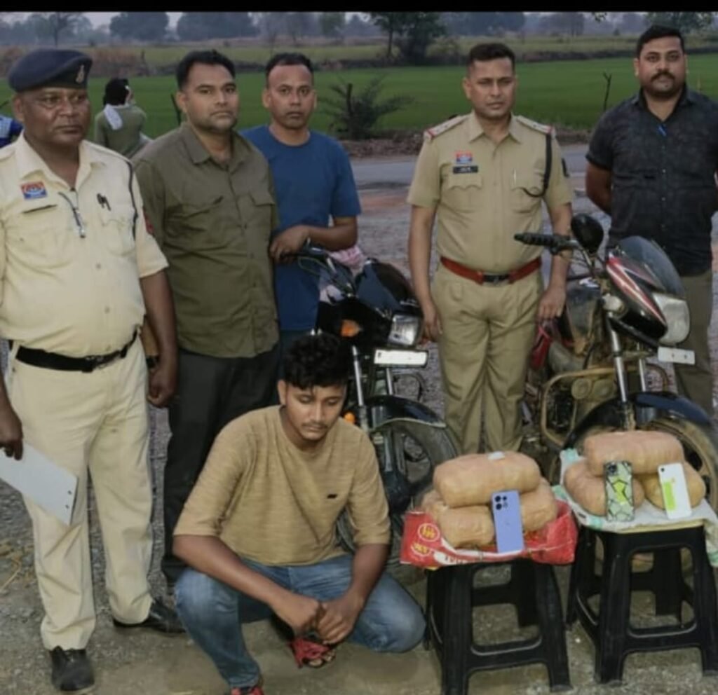 नाकाबंदी कर पुलिस ने रोका दो बाइक सवार, लाखों रुपये का गांजा और मोबाइल जब्त
