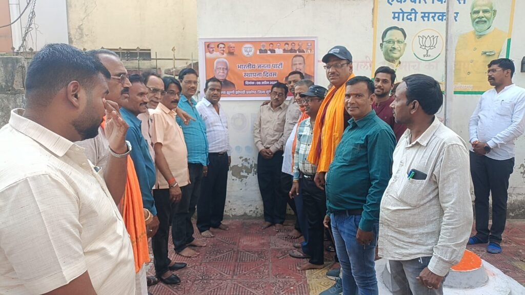 मुंगेली// भारतीय जनता पार्टी के स्थापना दिवस के अवसर पर मुंगेली भाजपा नगर मंडल द्वारा आज भव्य कार्यक्रम का आयोजन किया गया। इस दौरान पार्टी के वरिष्ठ नेताओं, पदाधिकारियों और कार्यकर्ताओं ने एकत्रित होकर संगठन के मूल मंत्र “राष्ट्र प्रथम, अंत्योदय और सेवा” को आत्मसात करने का संकल्प लिया।